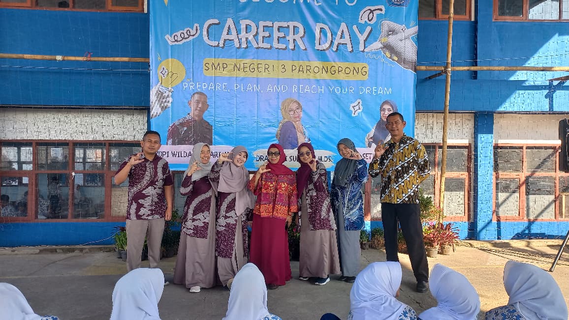 Parongpong, KBB – SMPN 3 Parongpong kembali menghadirkan ruang inspiratif bagi peserta didik kelas IX melalui kegiatan Career Day 2026, Kamis (16/4/2026). Mengusung tema “Prepare, Plan, Reach Your Dreams”, kegiatan ini menjadi wujud kolaborasi antara Bidang Kesiswaan, Kurikulum, dan Humas dalam memberikan layanan bimbingan karier yang terarah dan berkelanjutan.
