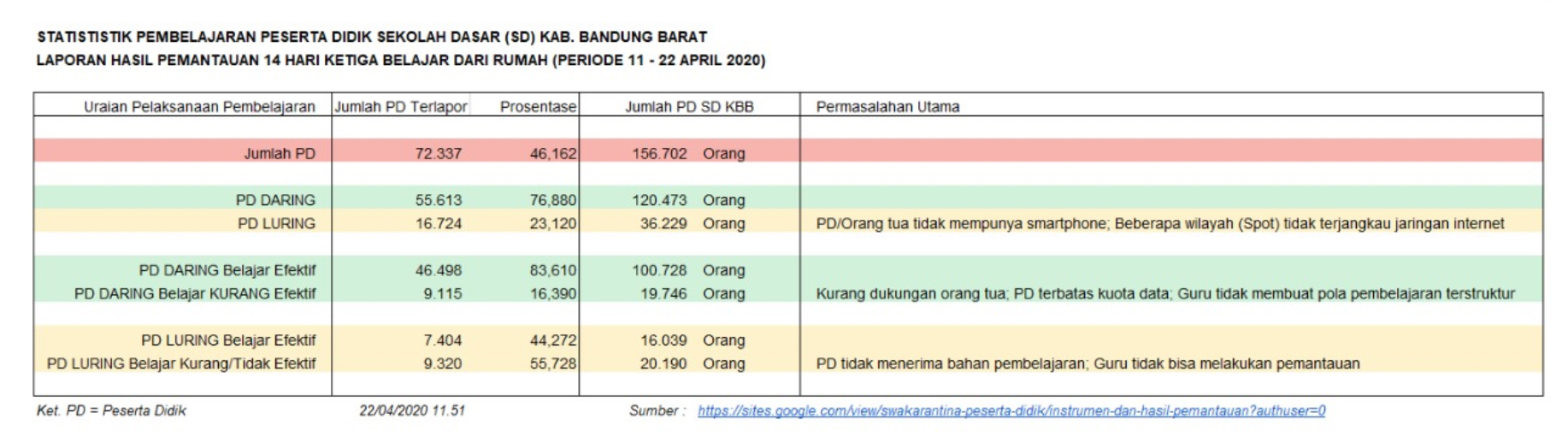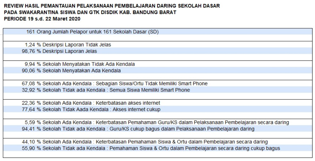 Hasil Pemantauan Pembelajaran di Masa Covid 19 periode 19-22 Maret 2020