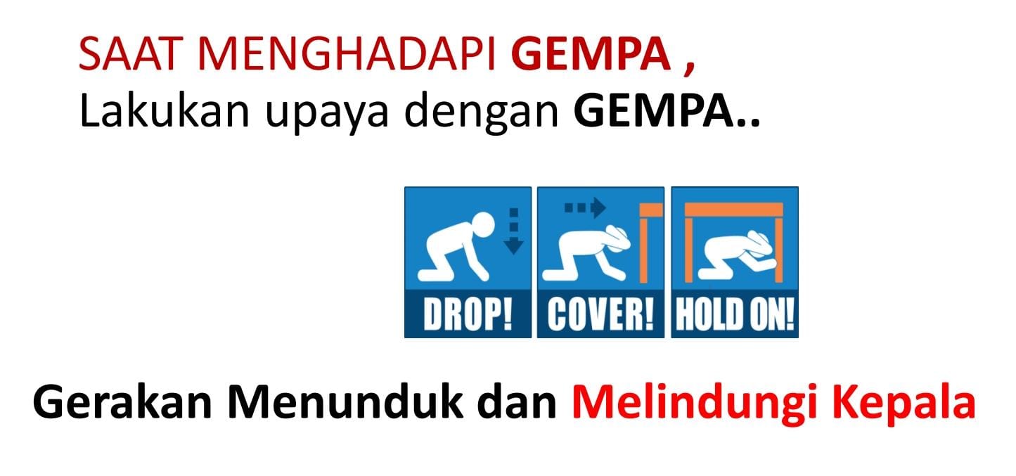 Akhirnya, gerakan ini ditekankan karena saat guncangan (yang berlangsung singkat, 30-40 detik), tindakan terbaik adalah segera merunduk (DROP), melindungi kepala (COVER), dan berpegangan (HOLD ON) di bawah perabotan kuat seperti kolong meja, menghindari jendela dan kaca. Terakhir, setelah gempa, evakuasi harus dilakukan dengan tertib, melindungi kepala, dan berjalan melalui tangga darurat (tidak menggunakan lift) menuju Titik Kumpul untuk penghitungan dan penanganan korban. Sekolah juga harus membentuk Tim Siaga Bencana yang terlatih dalam P3K dan evakuasi untuk memastikan keselamatan seluruh warga sekolah. ***